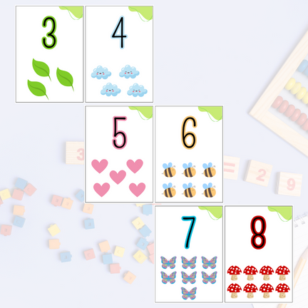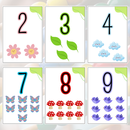 Essa abordagem é ótima para ligar os números com as suas respectivas quantidades, facilitando a visualização da criança.
