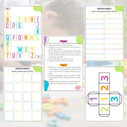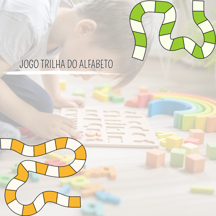 O jogo "Trilha do Alfabeto" é uma atividade lúdica projetada para ampliar o conhecimento das letras do alfabeto e o repertório de elementos que começam com cada letra.