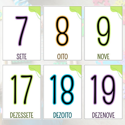 Este ebook de numeral por extenso para colar na parede auxilia no reconhecimento dos números.