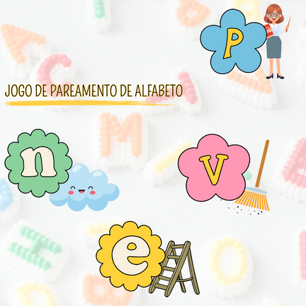 O pareamento de alfabeto é uma atividade divertida e educativa que auxilia o reconhecimento do alfabeto e amplia o repertório de elementos que iniciam com cada letra.