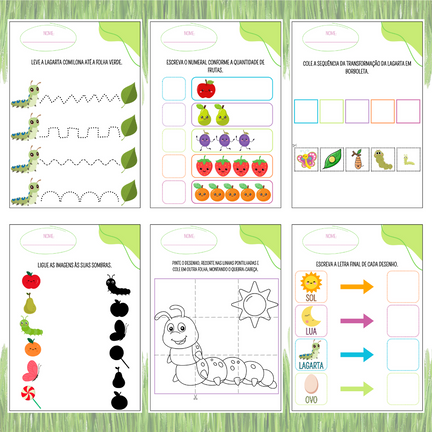Este e-book abrange 50 páginas repletas de atividades relacionadas ao livro "Uma Lagarta Muito Comilona", de Eric Carle. Desenvolvidas com o intuito de estimular diversas áreas do conhecimento, essas atividades foram projetadas para incentivar as crianças a expandirem seus horizontes de aprendizado de maneira contextualizada e envolvente.