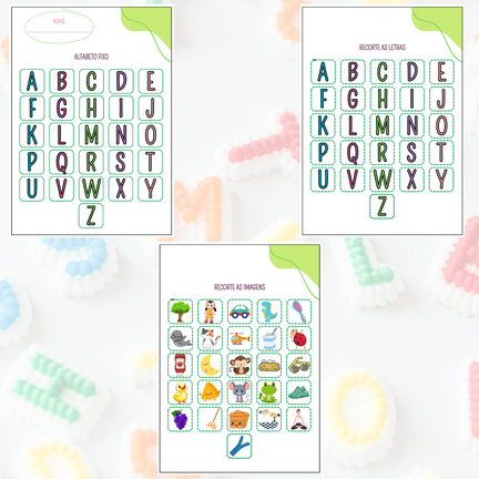Esse jogo é composto por um alfabeto fixo, um alfabeto móvel (para recorte), imagens móveis (para recorte) e as regras.
